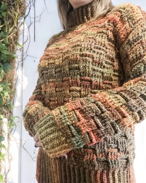 With its rustic autumnal colours and weave texture it is a staple piece that is unlike any other crochet sweaters.